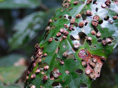 Next, to learn about invertebrates by using pitfall traps. Specific food or chemicals can be used to attract certain species of inverts. Beetles are attracted to tuna or formaldehyde, butterflies, fruit. We used soapy water at the base of our traps to minimise being overwhelmed by hundreds of critters. Traps were placed 1m apart with a few leaves loosely placed over them to prevent a washout by the rains. Specimens were collected in the morning and then again in the early evening. This allowed us to compare the abundance and diversity of insects at night compared to the daytime. We had dichotomous keys and analysed the specimens in the lab, narrowing them down to a genus level. Whilst out collecting our catch in the traps, we got caught in torrential rain. Large tree branches were falling and, one landed directly behind me causing me to leap out of my skin. It can be super dangerous in the rainforest when it rains so be alert and careful!